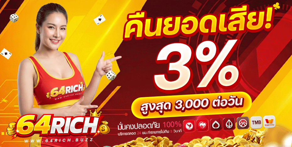 ❗64rich มีสิทธิ์ที่จะแก้ไข เปลี่ยนแปลง และหยุดโปรโมชั่นได้ทุกเมื่อโดยไม่ต้องแจ้งให้ทราบล่วงหน้า