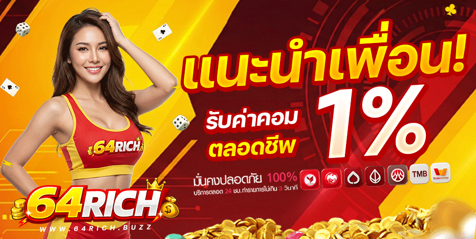 เพียงแค่แนะนำเพื่อนให้มาสนุกกับเรา คุณก็จะได้รับ โบนัส 1% จากเล่นทั้งหมดของเพื่อน ทันที! ยิ่งชวนมาก ยิ่งได้มาก ไม่จำกัดจำนวน