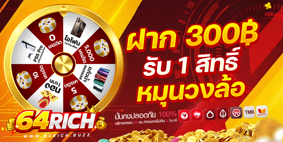 เมื่อลูกค้าฝากยอด 300 บาทขึ้นไป รับสิทธิหมุนวงล้อ 1 สิทธิ/วัน